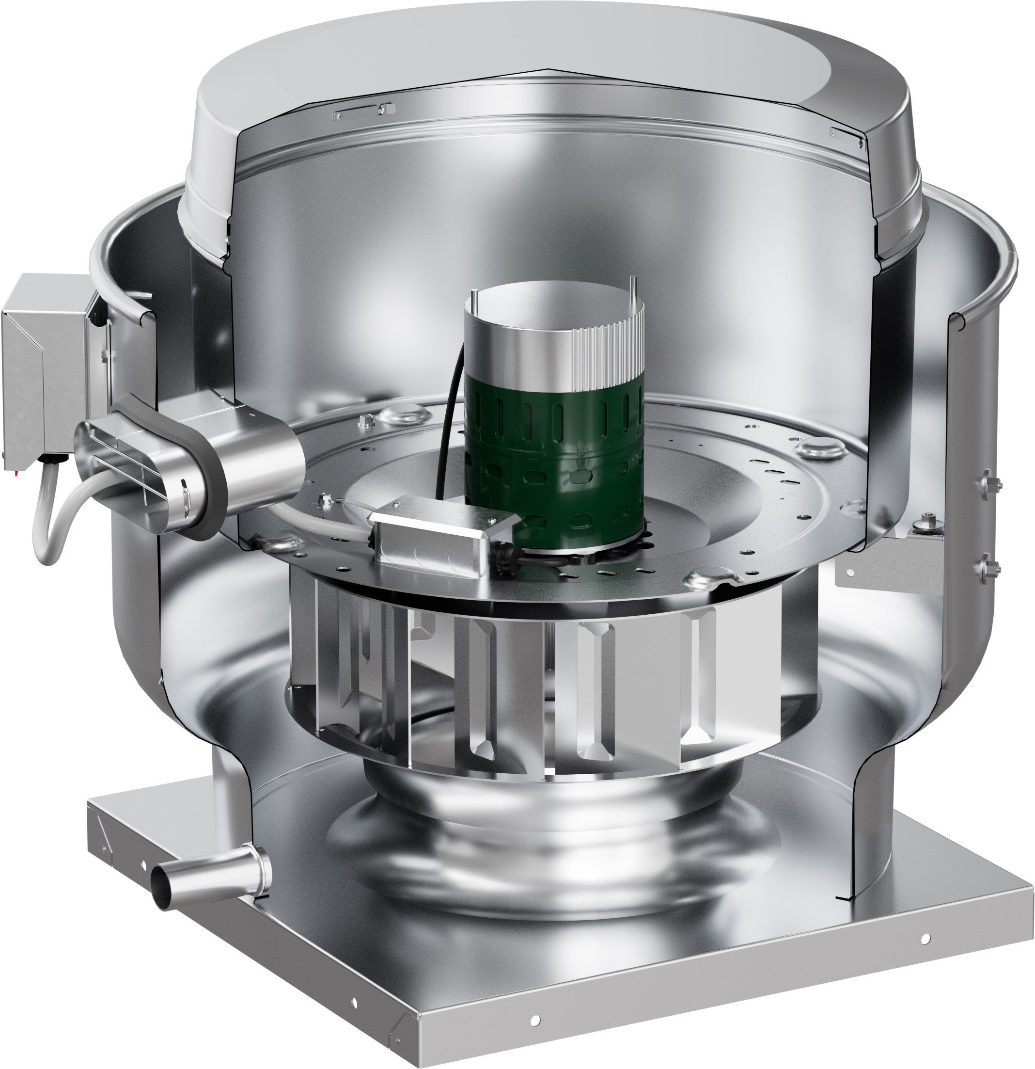 Aluminum upblast or sidewall centrifugal exhaust with a direct motor to eliminate belt losses. Opt for our Greenheck Vari-Green® motor for the ultimate in efficiency.