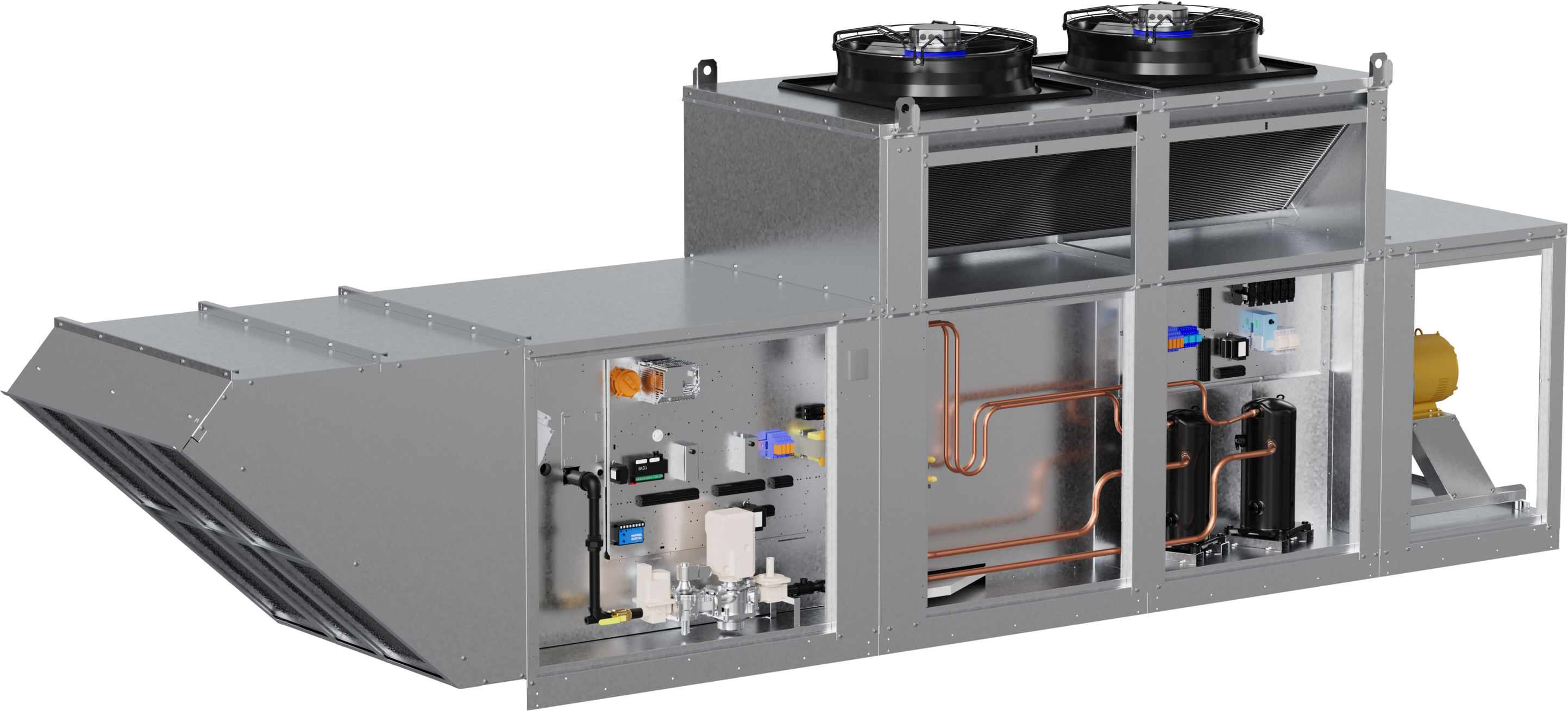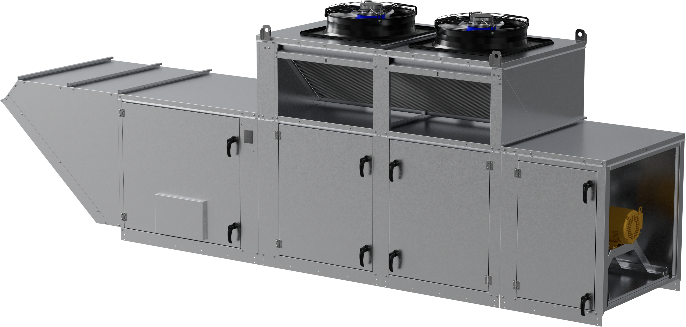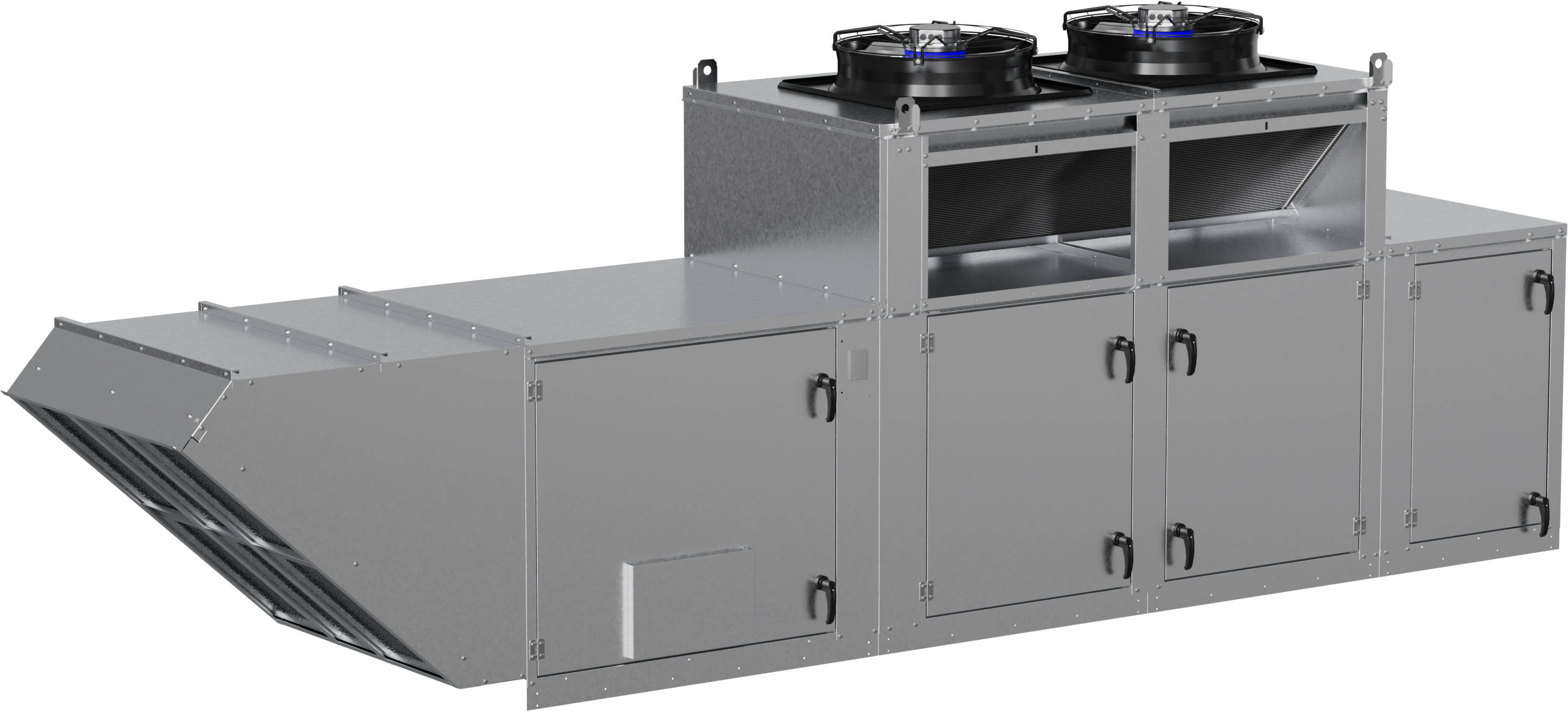 Large access panels are provided for easy inspection and maintenance of motors, drives, fan wheels, filters and heater controls